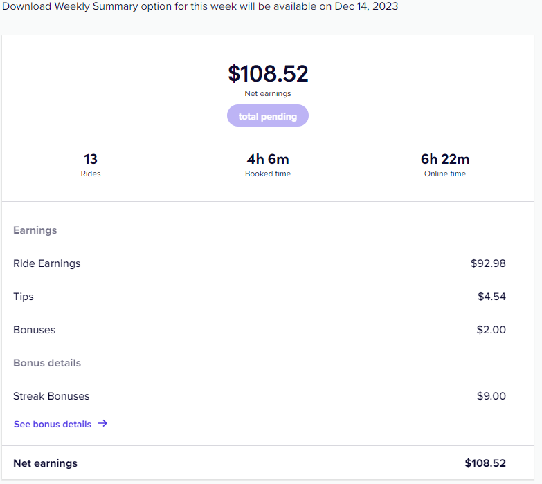 - 그리고 또 하나의 챌린지를 하고 있다. 이번 금요일 5:00AM까지 25번 운행을 하면 $63을 받는다. 오늘 하루에 13번으로 반 정도를 했으니 나머지 반을 하기는 쉽지 않을까 한다. 그리고 25번 이후 5번을 더 운행하면 $30을 추가로 받을 수 있다. 그러니까, 나는 목요일까지 30번 운행 목표를 채울것이고, $95을 받을 것이다.